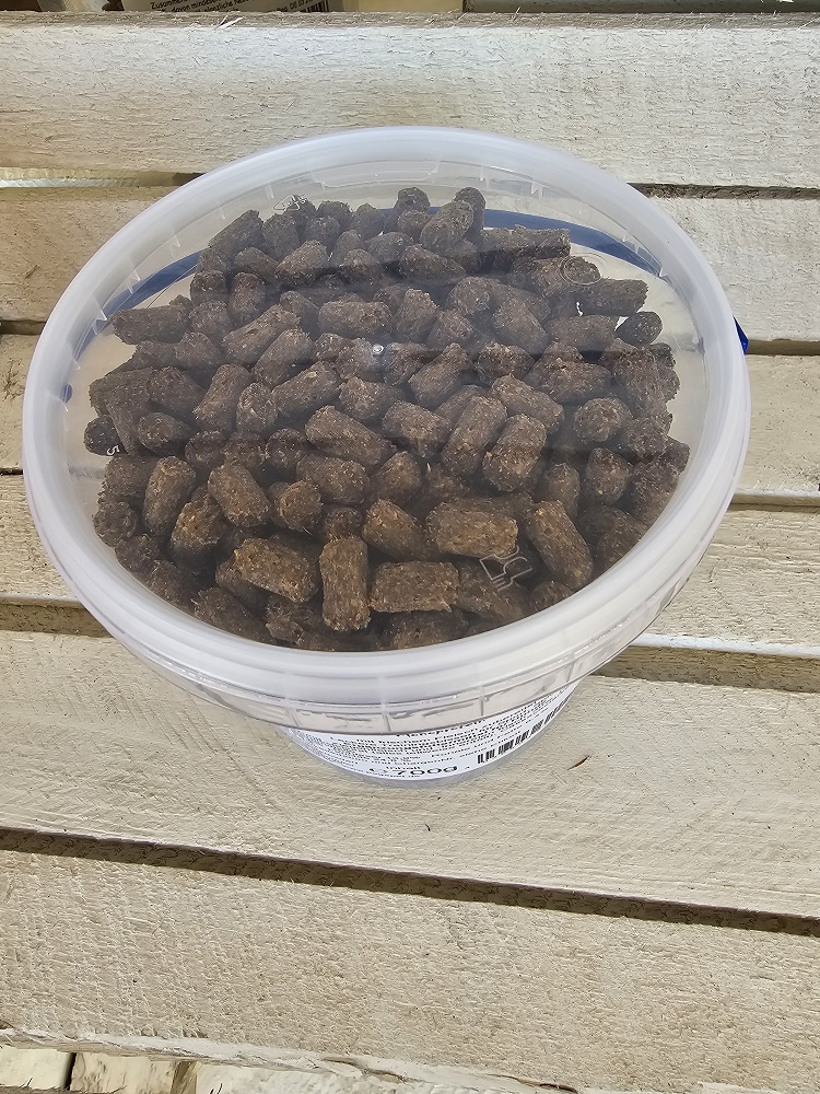Zusammensetzung: Ziegenfleisch und -Innereien frisch 30 %, Hanfsaat, Leinsaat, Färberdiestelsaat (alles teilweise entölt), Cassavastärke